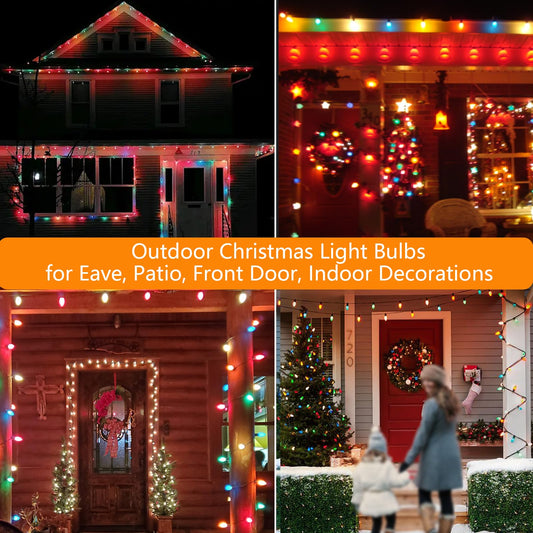 C7 Christmas Replacement Light Bulbs, 25 Pack Ceramic Multicolor Christmas Light Bulbs 5 Watt Light Bulb for Indoor Outdoor String Lights Wedding Roof Xmas Decor- E12 Candelabra Base