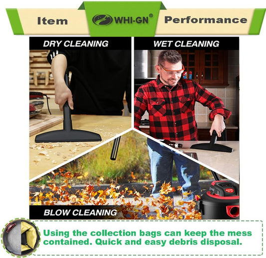 Pack 12(10+2) Shop Vac Bags 5-8 Gallon, 90671 9067133 Type H, 90661 9066133 Type E, VF2004, VHBS, VDBS High-Efficiency Disposable Collection Filter Bags, 90107 Dry Reusable Vacuum Filter Kit