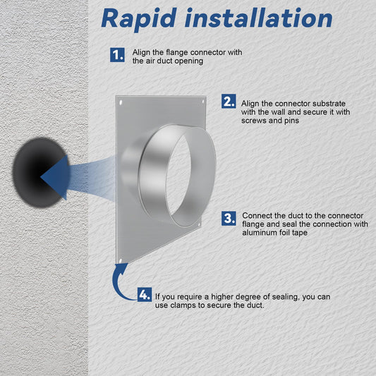 4 inch Duct Flange, Duct Connector Flange with Square Spigot Wall Plate, Galvanized Steel Dryer Vent Wall Plate, Adapter for Air Ventilation Systems, HVAC systems, Bathroom/Kitchen Extractor Fans, etc