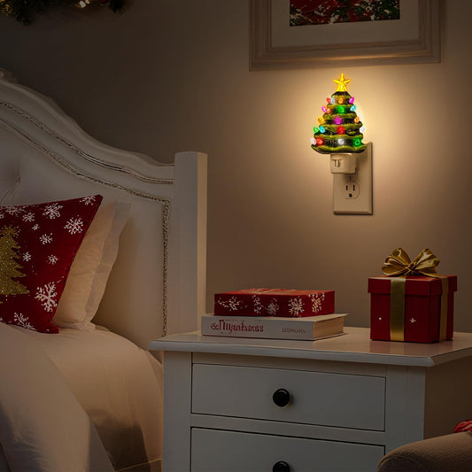 DORESshop Christmas Tree Night Light, 3000K Night Lights Plug into Wall, Cute & Funny Ceramic Christmas Decor Night Light for Kids, Plug in Nightlight with 360° Rotatable, Holiday Party Decor, 1 pack