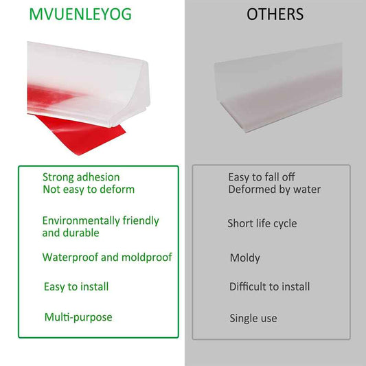 Shower Threshold Water Dam,Self Adhesive Silicone Waterproof Barrier Bathroom and Kitchen Shower Water Stopper Guard for Dry And Wet Separation Caulk Seal Strip Edge Trim(98Inch, White)