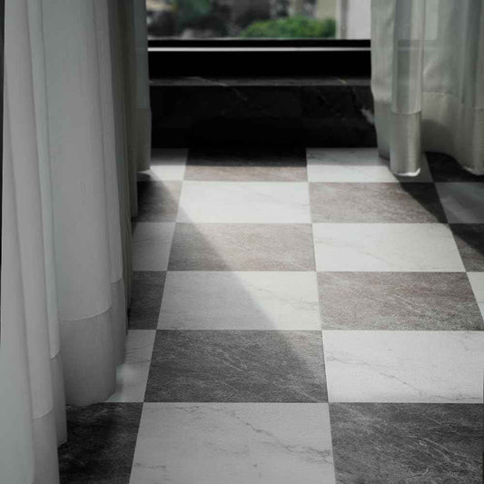 Peel and Stick Vinyl Flooring Roll– Modern Checked Minimalist Style Self Adhesive Flooring Tiles for Bathroom & Laundry – Matte Finish Peel and Stick Vinyl Flooring with Fade-Proof