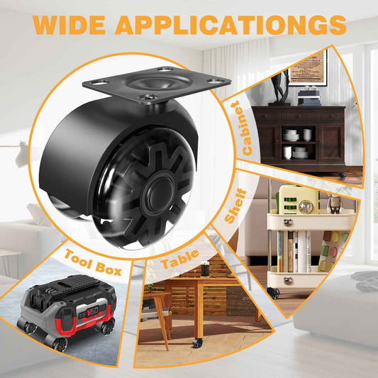 Heavy Duty Plate Casters - No Noise Polyurethane (Pu) Wheels,Load 800lbs,360° Swivel Replacement Casters Set of 4 for Furniture,Cabinet,Cart,Table, Toolbox (Black, 2 inch)