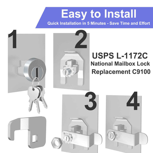 Hehdbz 1 Pack L-1172C Mailbox Lock Replacement C9100, Mailbox Lock with Keys Replacement for USPS Mailbox Key Lock, 3 Keys and C7120 Cam