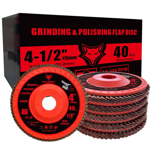 FOXBC 4-1/2 inch Ceramic Flap Disc 40 Grit for Angle Grinder with Speed HUB, Type 27, Grinding and Polishing for Metal, 5 Pack