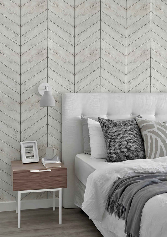 CiCiwind 393.7"×16.8" Wood Peel and Stick Wallpaper White Grey Herringbone Wallpaper Removable Self Adhesive Faux Wood Contact Paper for Bedroom Bathroom Cabinets