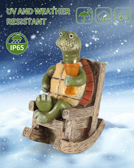 iStatue Solar-Powered Turtle Figurine Light with Glowing Cup - 5.5 in Lifelike LED Decorative Lamp for Outdoor Ambiance - Patio Table, Yard & Garden Decor (Turtle)