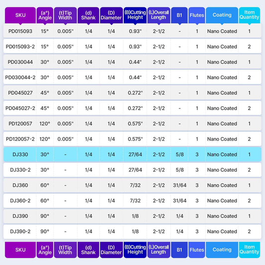 Turnextte 30 Degree V-Groove Engraving Bit, Carbide CNC Chamfer End Mill 3 Flutes 1/4 inch Cutting Diameter and 1/4 inch Shank with Nano Blue Coated Carbide End Mill for Carving Engraving