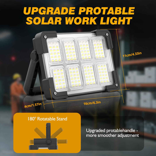 120W Solar Rechargeable Work Light, 144 LED 10000LM Led Work Light with 4 Modes, Portable Flood Light with Stand, IP66 Waterproof Outdoor Working Light for Emergency Mechanic Camping Repair (Black)