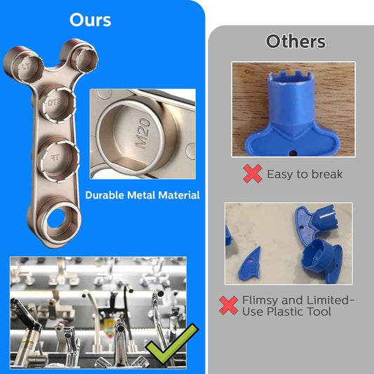 Tylola 11-in-1 Faucet Aerator Removal Tool – Universal Metal Aerator Wrench Key for TT, TJ, JR, STD, TF Recessed Sizes + M18 M20 M22 M24 M28 Threaded Housings – Ergonomic Handle, Rustproof Finish