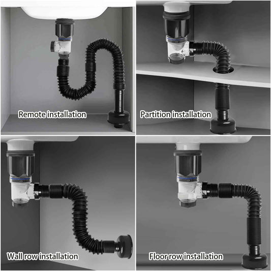 Bathroom Sink Drain kit Black,That can be Used with or Without Overflow,Bathroom Sink Drain with Strainer Basket Hair Catcher and pop-up Stopper, for 1-1/4'' & 1-1/2'' RuQiankun