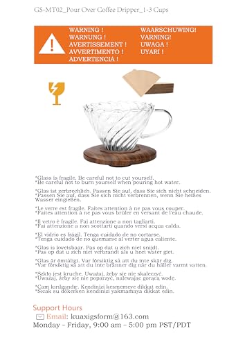Lalord Pour Over Coffee Dripper with 100 pcs of Size 02 Paper Filter, Borosilicate Glass & Walnut Collar, Drip Coffee Maker, 1-3 Cups, Clear (Coffee Dripper)