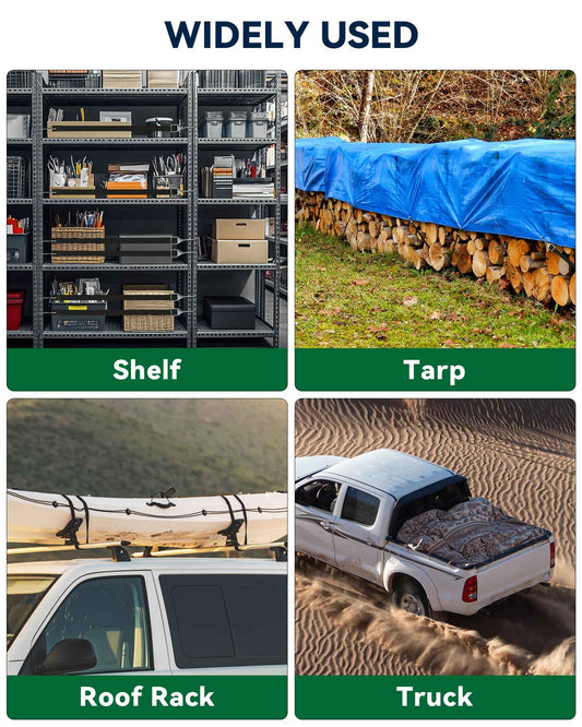 4 Inch Short Rubber Bungee Cords Heavy Duty Outdoor, Mini Small Bungee Straps with Upgraded Hooks, Black Tarp Straps with 1.9X Max Stretch & 100% Rubber for Cargo, Van, Truck, Motorcycle, etc (9 Pcs)