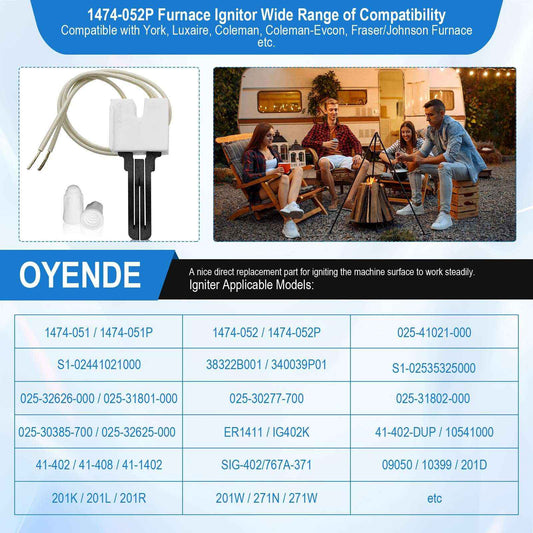 Furnace Ignitor, Gas Furnace Hot Surface Igniter Replacement For Coleman Evcon Mobile Home Furnaces, Furnace Igniter Replacement 1474-051P, 1474-052P, 025-41021-000 Furnace Replacement Ignitors