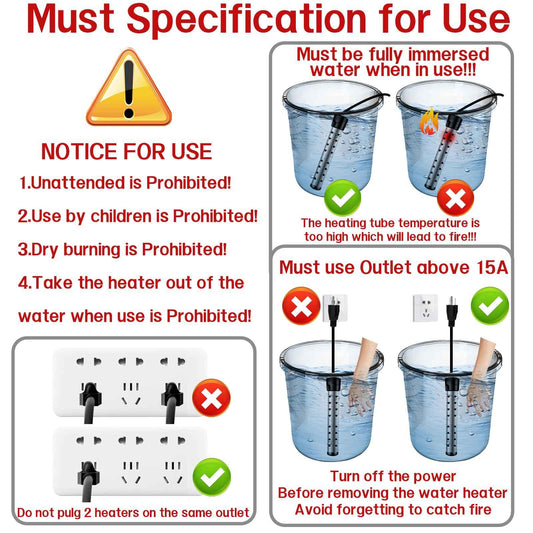 immersion Water Heater with Intelligent Temperature Control, Stainless Steel Mini Pool & Bucket Heater - Heats 5 Gallons in Minutes, Ideal for Home, Camping, and Outdoor Use