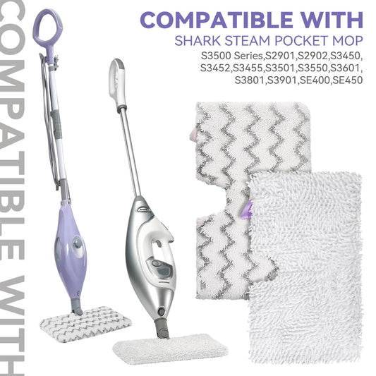 S3501 For Shark Steam Pocket Mop Pads: Washable Steam Mop Replacement Pads For Shark Steamer S3601D S3601 S3801CO S3901 S3550 SE450 (6Pack)