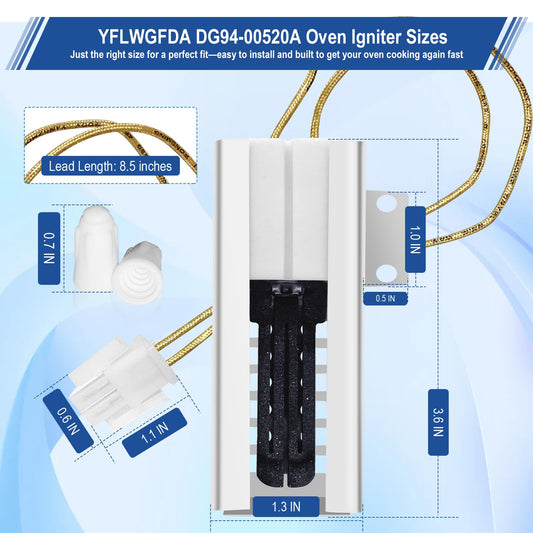 DG94-00520A Oven Igniter for Gas Stove,Oven Igniter for Sam-sung NX58H5600SS Nx58h9500WS,for G-E Whirl-pool Hot-point Sam-sung Gas Oven Igniter,Replace 2692271 AP5577941 WB13K21 Norton 501a W10918546.