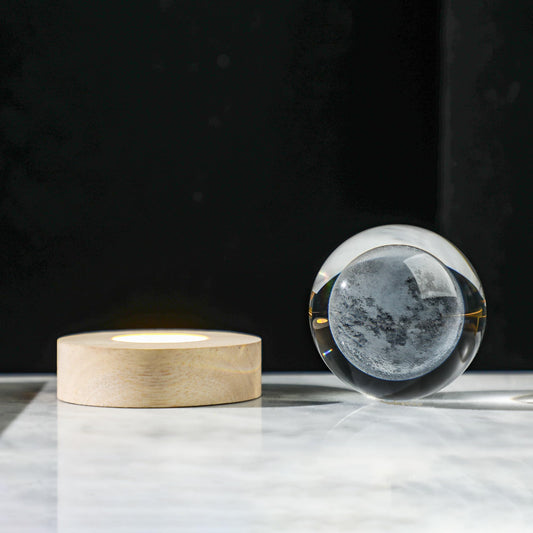 LOULIQIGIFT Crystal Moon Crystal Ball with Light Base Night Light 2.3Inches Glass Moon Globe Home Decor Gift for Women, Friends, Family
