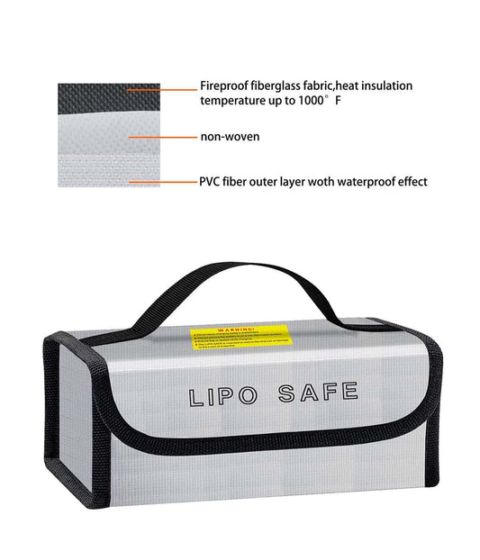 Jehaseg Lipo Battery Safe Bag Fireproof Bag for Lipo Battery Storage Charging Transport,Home Travel Office Safe Storage Pouch (230 * 80 * 100mm+185 * 75 * 60mm)
