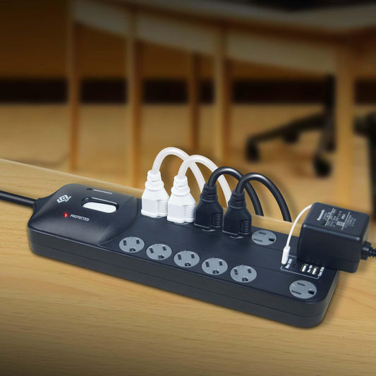 OSKOS PD20W USB-C Charger, 18W USB-A Fast Charging, Four Ports (2A2C), 12 outlets Power Strip with 6FT 14/3 Cord, 3540 Joules Surge Protected, 15A Built-in Circuit Breaker, UL Listed, Wall mountable