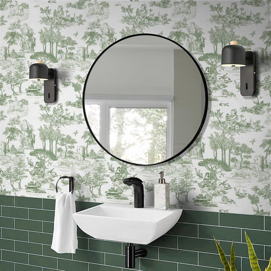 WENMER Toile Wallpaper, 17.7" X 118" Green and White Peel and Stick Wall Paper, Toile de Jouy Wallpaper, French Vintage Contact Paper for Bedroom, Walls, Backdrop, Cabinet, Home Decor