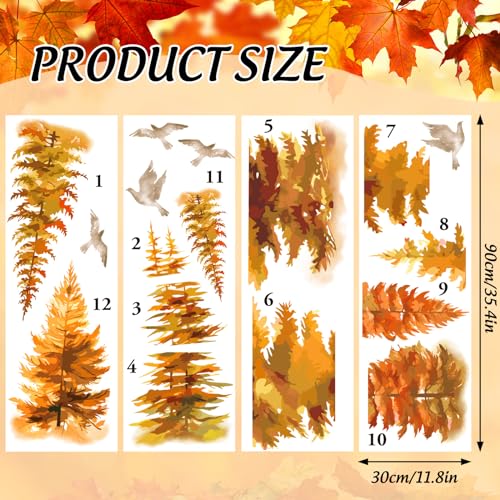 4 Sheet Fall Wall Stickers Watercolor Autumn Forest and Flying Birds Wall Stickers Adhesive Mural Wall Decor for Holiday Home Classroom Thanksgiving Supplies