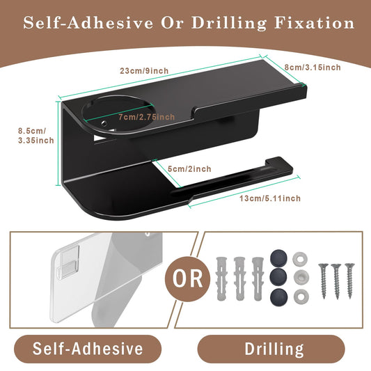 Toilet Paper Holder Wall Mount - Strong Adhesive or Screw Mount Bathroom Toilet Paper Holder with Shelf- SUS304 Stainless Steel Tissue Roll Storage - Holds Phone, Reed Diffuser(Matte Black)
