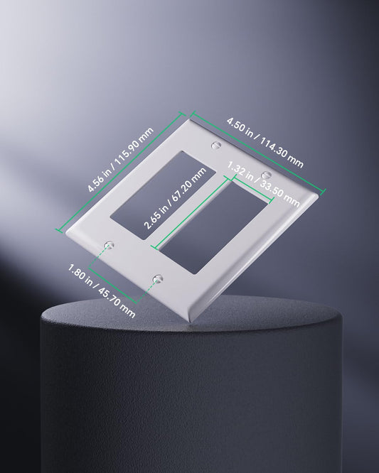 VCELINK (UL Listed) Double Light Switch Cover 5 Pack, 2 Gang Decora Wall Plate White, 4.50" x 4.56" Light Switch or Receptacle Cover Plates
