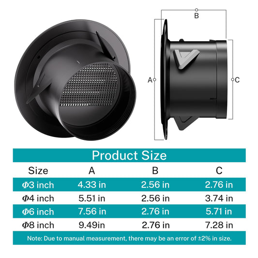 HG Power 4 Inch Soffit Vent, ABS Plastic Round Vent Cover with Built-in Screen Mesh, Black Louver Exhaust Vent for Exhaust Fan, Inline Duct Fan, Bathroom, Kitchen, Garage Use, 100mm
