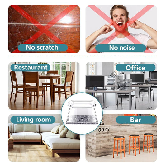 24 Pcs Chair Leg Floor Protectors Rectangle, Silicone Felt Furniture Leg Pads Caps Covers for Hardwood Floors (Fit Perimeter 3-3/4" to 4-7/8")