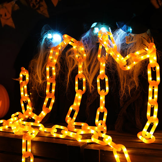 Halloween Decoration Solar Light String,6.6FT, 100 LED Orange Chain Lights. IP44 Waterproof, 8 Lighting Modes. Perfect For Horror Costume Accessories, Haunted House Courtyards & Halloween Party Decor.