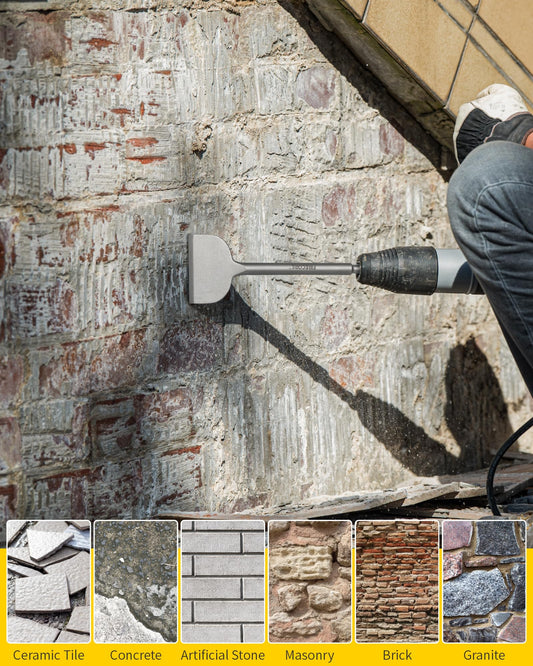 SDS Chisel Set, Firecore 4pcs Tile Removal Chisel Bits for SDS Plus Rotary Hammer Drill Attachments, Alloy Steel Shovel for Demolition Chipping Grooving Scaling Removing Cement Thinset Mortar Vinyl