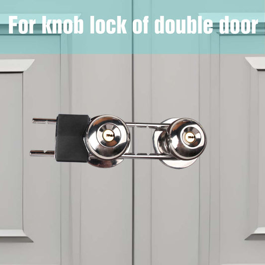French Door Lock, Door Security Bar, Double Door Locking Device, Keyed Extra Door Lock for Doors with Double Handles/Knobs/Levers, All Metal Construction, Safety U-Shaped Bar Prevent Kick Ins