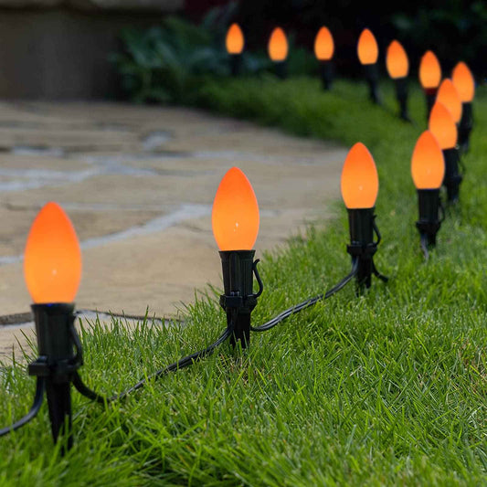 C9 Ceramics Orange String Lights, 25Ft Outdoor Halloween String Light with 26 Ceramics Orange Bulbs(1 Spare), Halloween Lights for Indoor Outdoor Party Holiday Decor, Black Wire