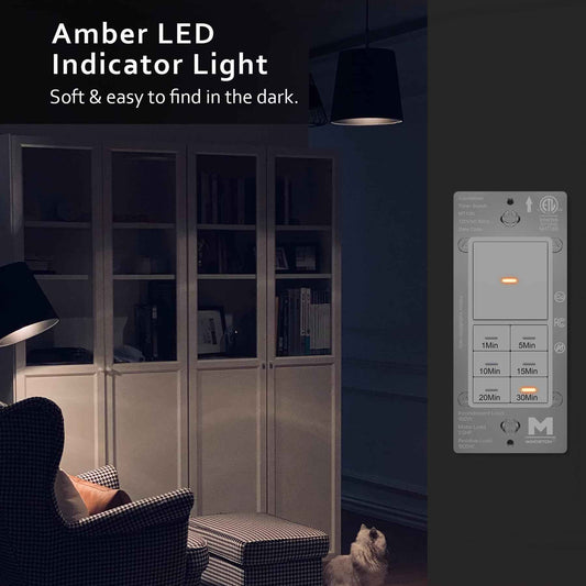 Minoston Countdown Timer Switch with Dimmable Indicator, 30 Min Wall Bath Fan Timer Switch for Bathroom Exhaust Fan and Light, 1-5-10-15-20-30 Minute, Neutral Wire Required, 120V, White (MT13N)