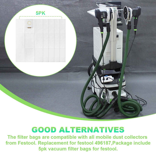 496187 Filter Bags For Festool CT 26 Dust Extractor, Replacement for Festool CT CTL CTM 26 E vacuum Selfclean Vacuum Bag - 5 Pack