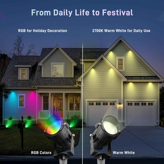UPONELED Christmas Landscape Lights 12W RGBW Outdoor Spot Lights for Yard, Low Voltage LED Landscape Spotlight with Remote Control, IP65 Waterproof Yard Spotlgiht for Lawn, Garden, 2 Pack