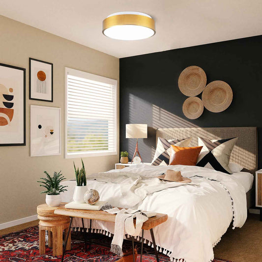 Wheatronic Gold Ceiling Light Flush Mount, LED Light Fixture 24W, Round Dimmable Flush Mount 5CCT for Bathroom, Living Room, Bedroom