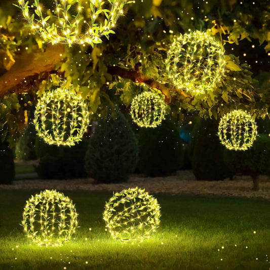 Flacchi Hanging Iron Sphere Lights with Artificial Greenery – 12Inch 120 LED Waterproof Outdoor/Indoor Decor Ball Light with Timer & 8 Modes – 2 Pack for Garden, Christmas, Weddings (Warm White)