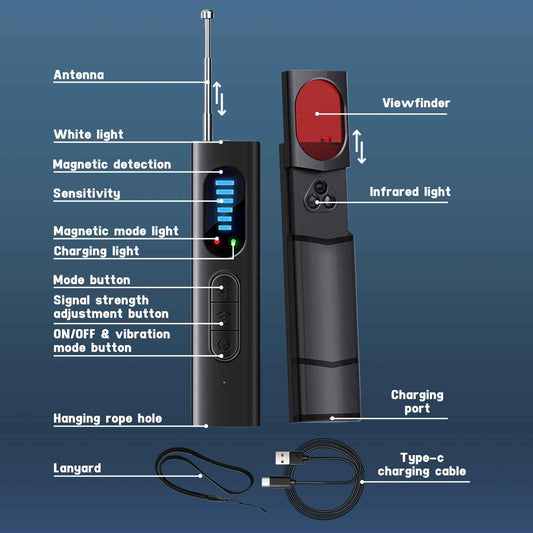 Hidden Camera Detectors, Camera Detector Bug Spy Camera Finder, Infrared RF GPS Tracker Listening Devices Anti-Spy Detector with Viewfinder, 5 Modes 5 Levels Sensitivity for Travel Hotel Airbnb Office