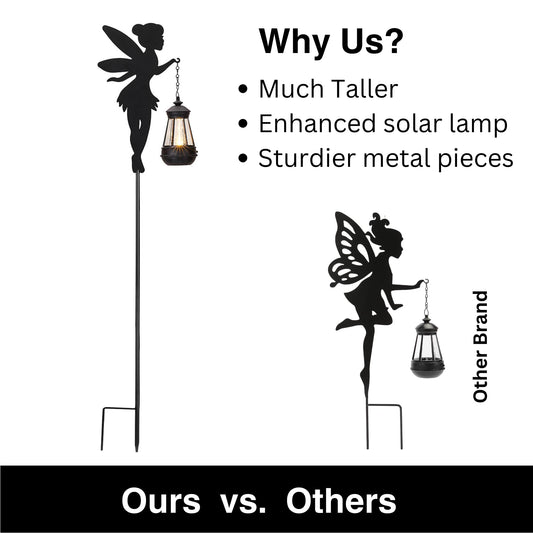 Fairy Garden Accessories Lawn Ornaments 1 Pair - Solar Fairy Lights Outdoor Decorations, Metal Garden Stakes Decorative Figurines for Yard Decor, Patio (Type B Warm Lighting)