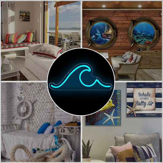Ajoyferris Wave Neon Sign For Wall Decor Dimmable Led Neon Wave Sign Night Lights Led Wave Sign Ocean Neon Sign for Living Room Bedroom Office Bar Party Christmas Gift(16.5x7inch, Ice Blue)