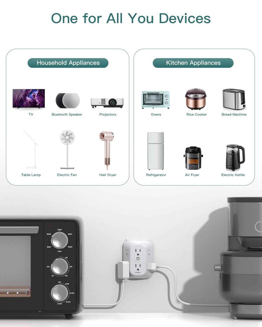 2-Pack Surge Protector Outlet Extender, Outlet Splitter, 6 AC Multi Plug Wall Outlet, Outlet Adapter with 1800J, Plug Extension Outlet for Home Office Dorm Room