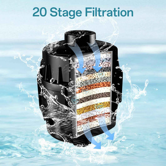 20 Stage Shower Filter for Hard Water, Remove Chlorine Heavy Metals and other Impurities, Improve Skin Hair, Fit Most Handheld Showerhead Fixed Rainfall (Matte Black)
