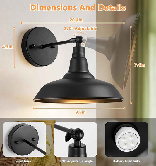 Set of 2 Black Vintage Battery Operated Wall Sconces with Remote Control - Industrial Cordless Indoor Lighting for Bedroom & Hallway