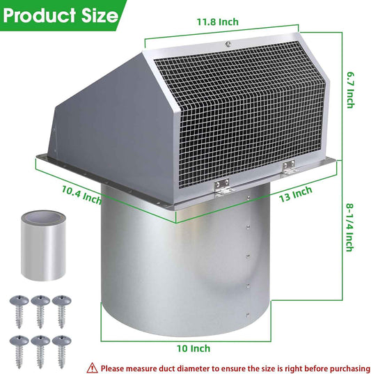 5-Inch Exterior Dryer Vent Cover with Screen & Damper - Galvanized Steel, Black