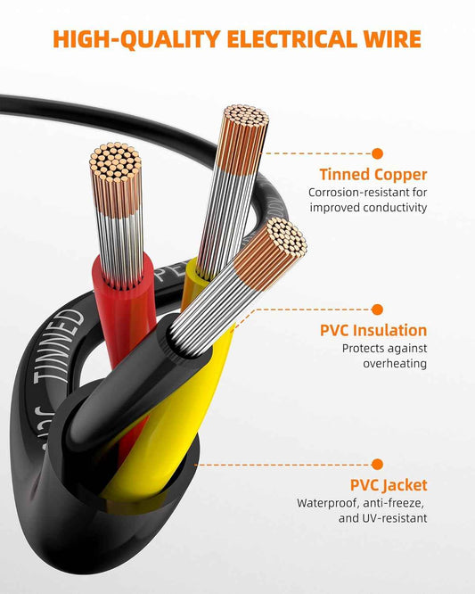 16 AWG Tinned Copper 3-Conductor Electrical Wire - Waterproof PVC Cable for Automotive, Marine & Solar (100FT)