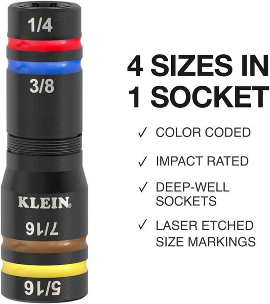 Klein Tools KNECT Quad Socket Set - 4-in-1 Color Coded, Heavy-Duty SAE Impact, 12 Sizes