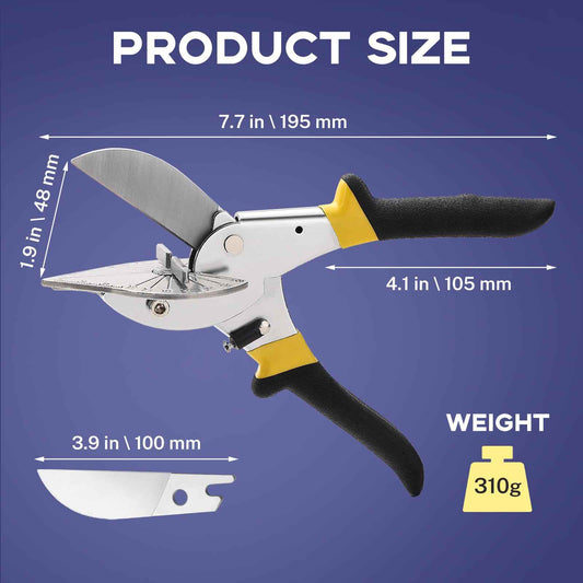 Miter Shears for Molding, RAINHOL Trim Cutter Hand Tool, Adjustable Angle Cutting Tool for Wood Trim Molding, PVC, Vinyl, Trunking, 2 Extra Replacement Blades Included