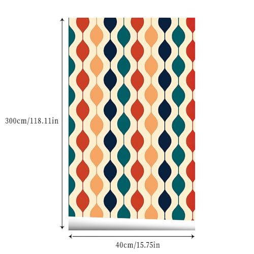 Vintage Retro Wallpaper, Colored Geometric Abstract Wall Paper Peel and Stick 70s Style Wallpaper Self-Adhesive Shelf Liner Funitures Dresser Drawer Cabinet Decor Walls Decal 15.7X118 Inches